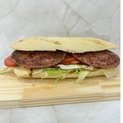 Salvaje con lechuga, queso, bacón, huevo, tomate, mayonesa y especies. Puedes hacerlo de pollo, lomo adobado o lomo fresco