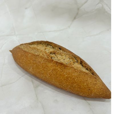 Pan individual de harina integral, con corteza fina y crujiente y miga compacta. Su sabor natural y textura consistente lo hacen ideal para preparar tostadas o bocadillos equilibrados, aportando fibra y un aporte energético sostenido.